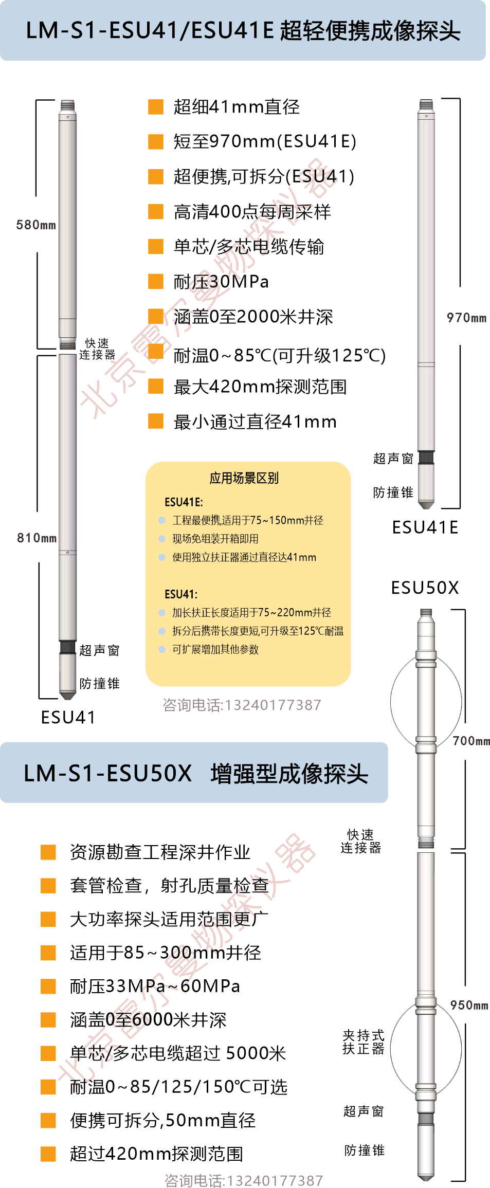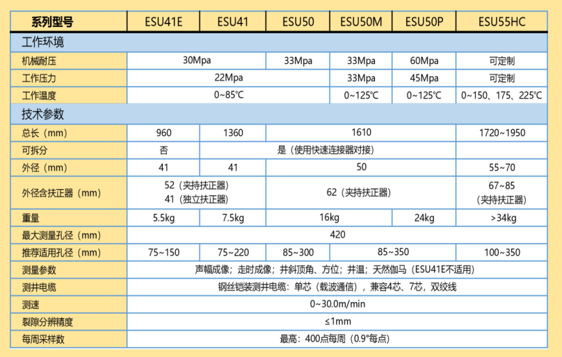 超便携的ESU41E到ESU55HC涵盖了从工程、矿山、深层地热各种井况。系统由地面控制面板和井下探头组成。